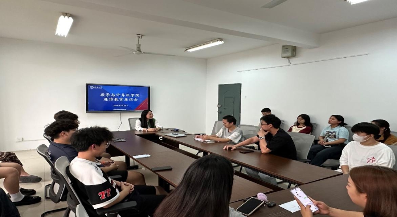 为持续深入加强校园廉洁文化建设2024425日,数学与计算机学院开展了廉洁教育座谈会,共计40余名师生代表参加此次座谈会。