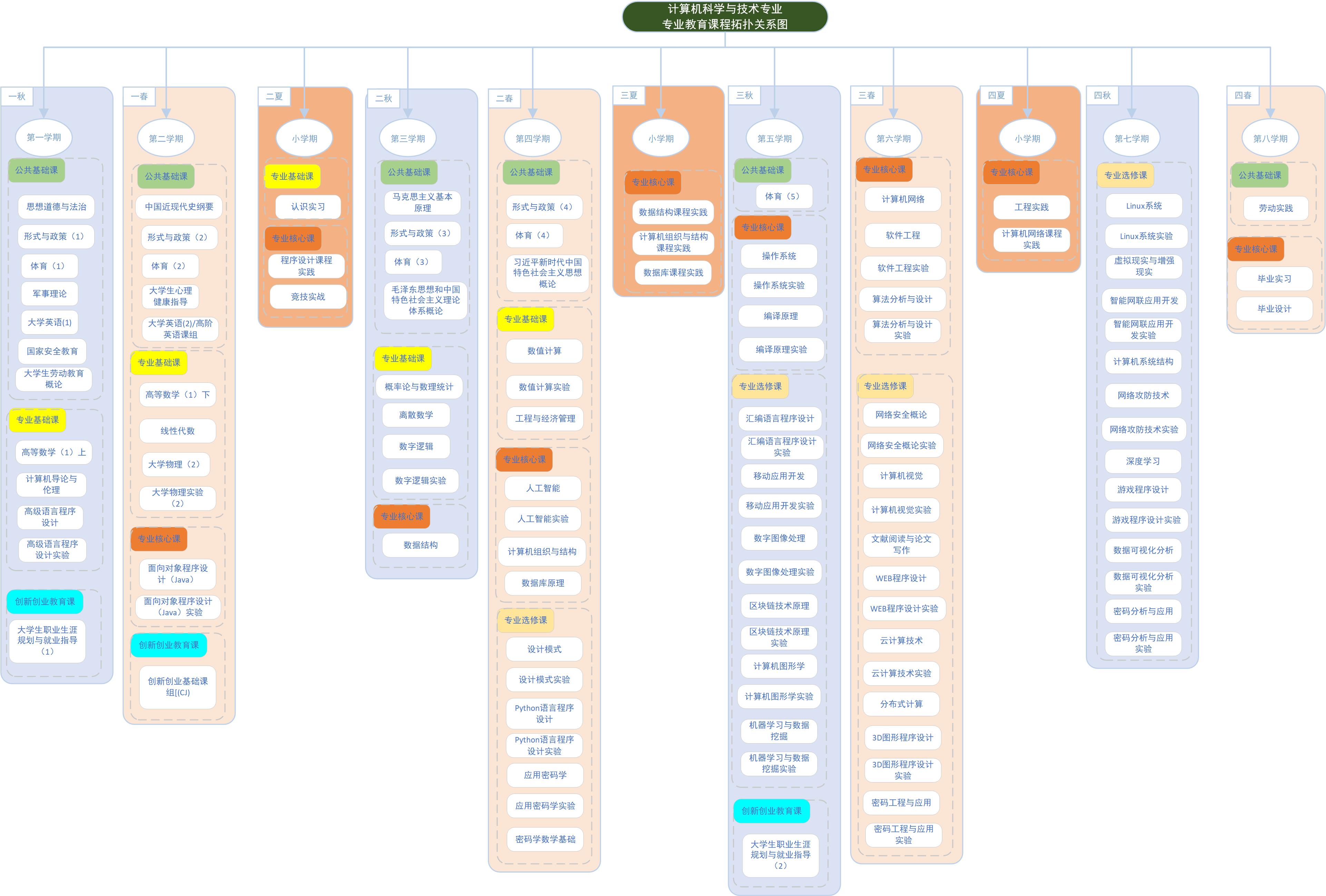 通过科学构建和整体优化课程体系的培养学生具有坚定正确的政治方向,热爱祖国和人民,拥护中国共产党,掌握中国特色化社会主义理论体系,践行社会主义核心价值观,树立正确的世界观、人生观和价值观,具有良好的思想道德、社会公德和职业道德,做到德智体美劳全面发展。同时具备以专业为核心的学习能力、实践力、创新创业能力、组织管理能力以及运用科学方法解决计算机复杂工程问题能力